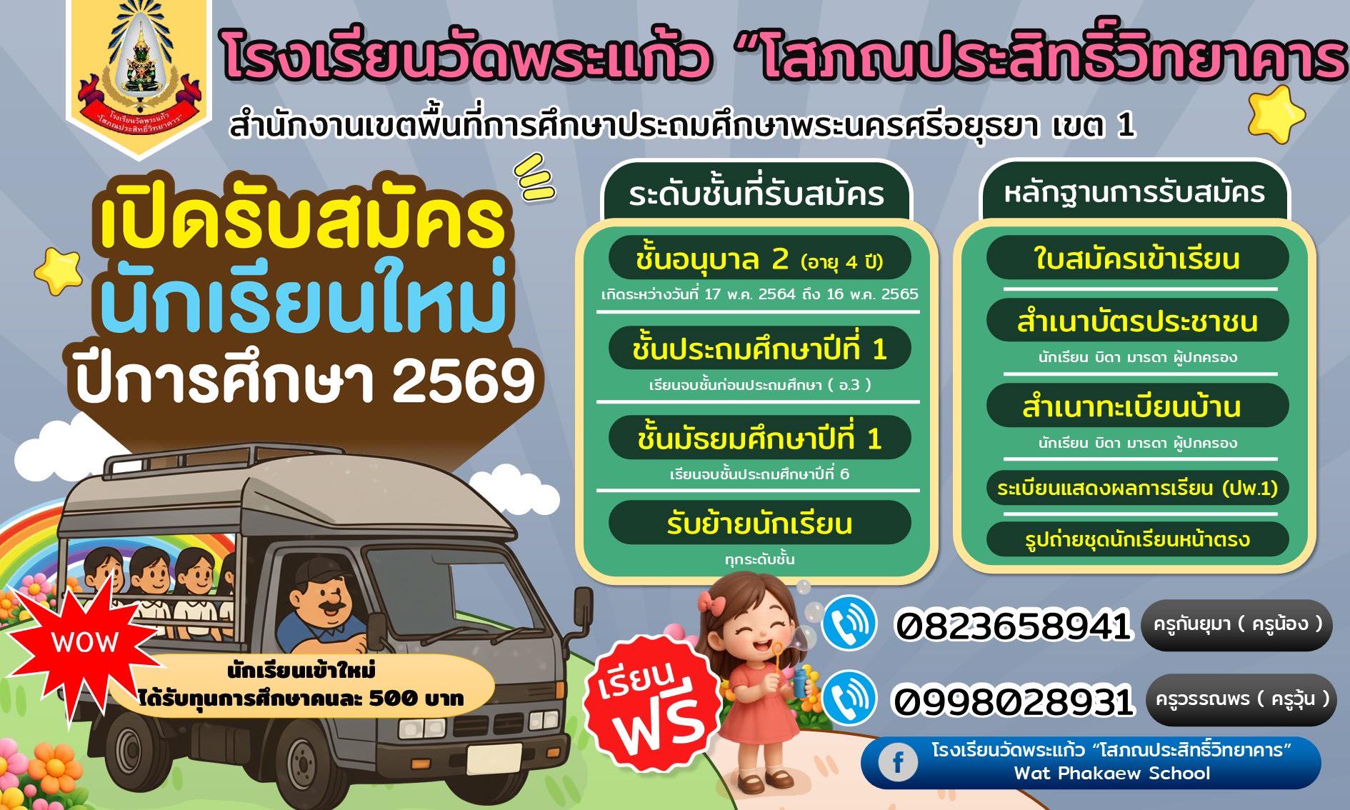 ยินดีต้อนรับเข้าสู่เว็บไซต์ โรงเรียนวัดพระแก้ว โสภณประสิทธิ์วิทยาคารค่ะ...